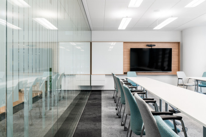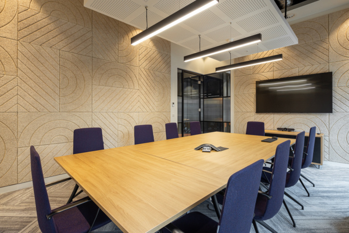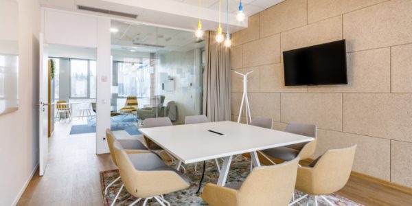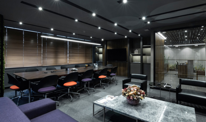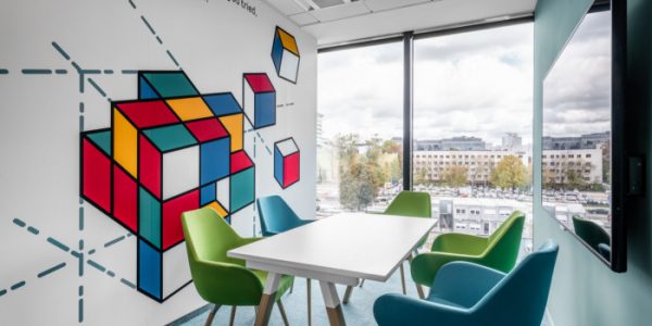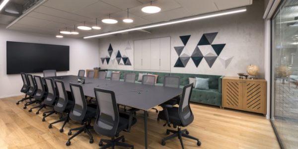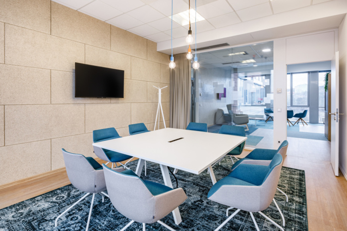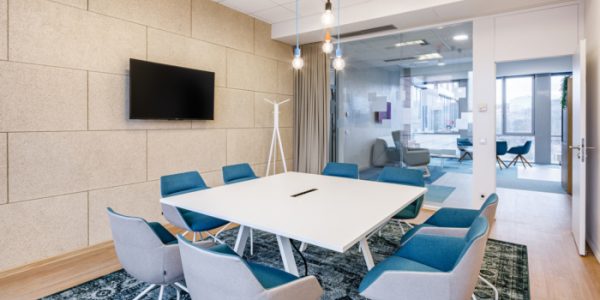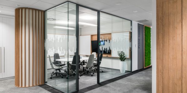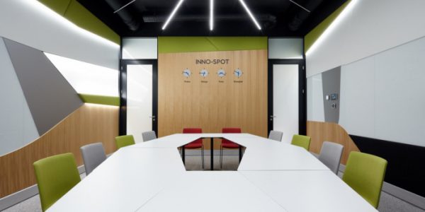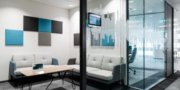 The Oticon company is a part of a Demant group, offering the hearing improving solutions. Due to the specific nature of the office’s business, the main motive is sound – we can find here proper interior acoustic solutions as well as a graphical symbols and accents with direct reference to the company’s motive.