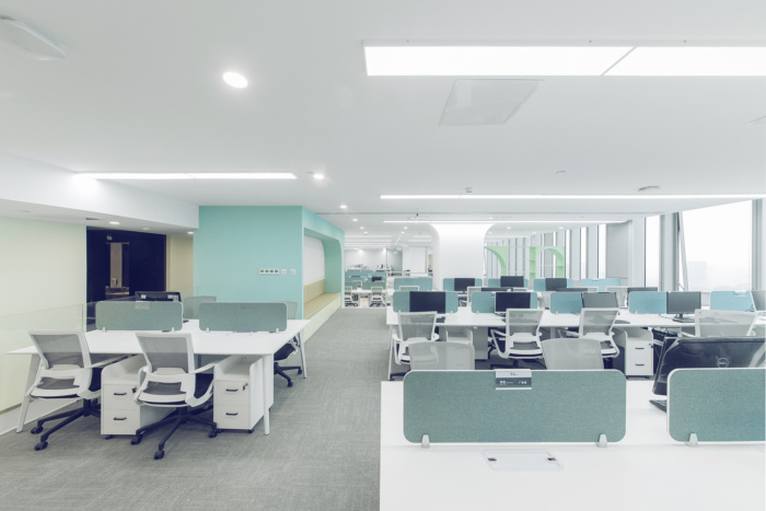 Partitions on the desk and in the space well balances privacy and openness. People, objects and the space are integrated, together generating flexible and diversified working scenes. The hollowed-out partitions within the space look like windows and beautiful pictures, which separate different sections while connecting them as well.