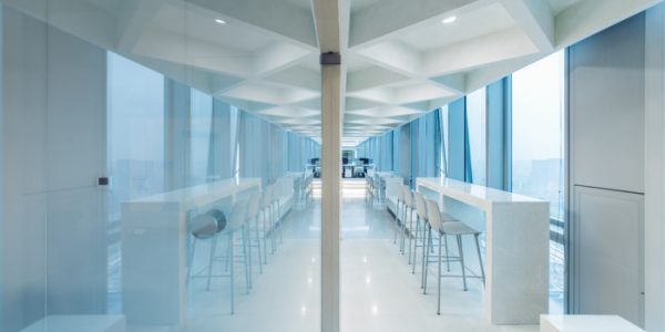 Based on sophisticated combination and calculation, the designers set many public leisure spaces around functional areas. Those spaces not also support adjacent functional areas but also bring fabulous landscape and facilities for the staff. The glass generates reflections and creates a reversed illusionary space. Real objects and glass reflections present distinct visual effects, which feature interweaving of interior and outdoor views as well as integration of dynamism and calmness.