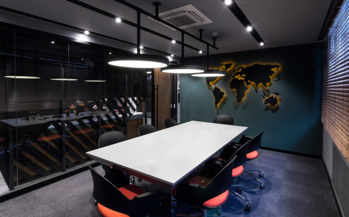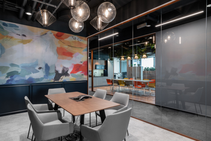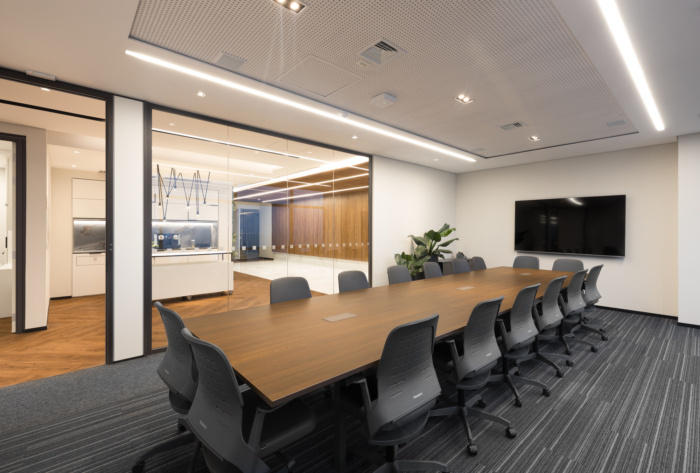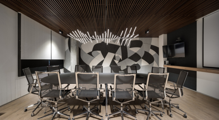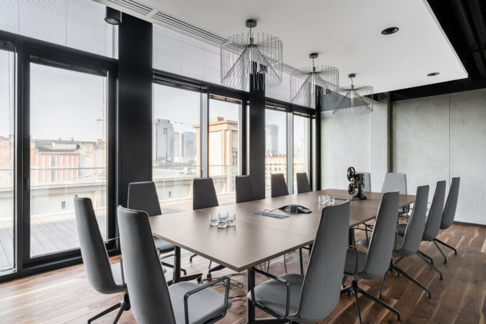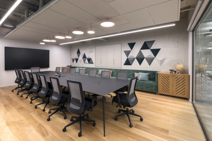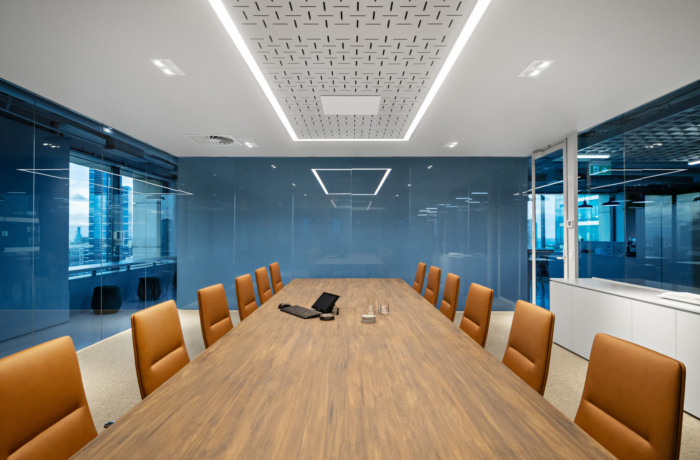 The key aspect was to adapt the space to the needs of particular departments, hence implementing optimal spacial solutions with consideration of ergonomics and large storage space – which was very important for the investor. It turned out that the best solution was the open space arrangement. From the spacious reception with prevailing wood on both the ceiling, walls and the reception desk, we come to the working space, where we can find workstations that ensure maximal comfort and efficiency. Due to their acoustics, the conference rooms are the perfect meeting spaces, whereas the harmonious colours in the kitchen take us to the peaceful and quiet shores of Iceland.
