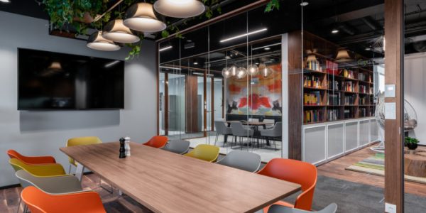The main focus of the 540 square-meter Oticon office design, located on the 5th floor of the Warsaw-based Q22 office building, was creating a pleasant and functional arrangement with the particular attention paid to employees’ needs and comfort.