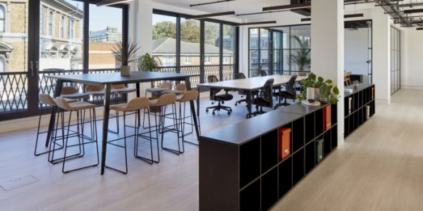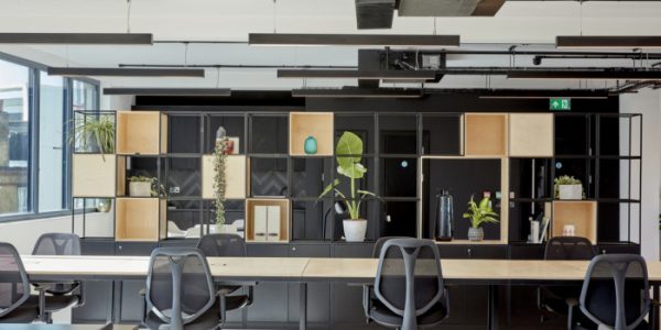 Internally, glazed meeting rooms and full-height windows create bright naturally lit workspaces, offset with a tonal palette inspired by aged industrial materials such as Verdigris and rust. Base materials of concrete, metal and timber, combined with exposed services and lighting, continue the industrial aesthetic. Soft furnishings in muted colours and natural greenery add a layer of domesticity and encourage social interaction. Cycle spaces and showers are provided for building users.