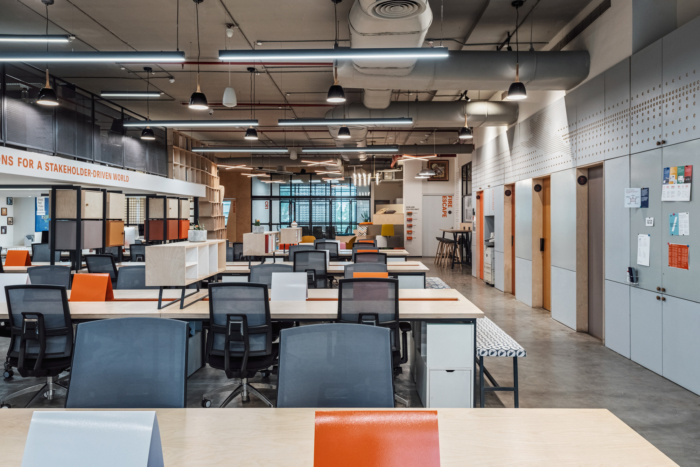 The initial brief and ideas for the new AICL workplace design were discussed collaboratively with the clients, with a lot of emphasis on understanding the future of working environments especially in the creative industry. Since creative methods have a lot of ‘fuzzy thinking’ we conceptualised this thought process into a mix of ‘fuzzy spaces’ for the new AICL workplace. By using the office’s large open plan style layout , we create a series of overlapping programs alternating between living , work and landscape spaces.