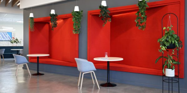 The desking itself is bold, some with red steel frames, for a visually interesting effect. Meeting booths and wall designs bring in more colour, creating an interior palette which, when looked at as a whole, is a myriad of tones that all speak to the brand, its global messaging and local flavour.