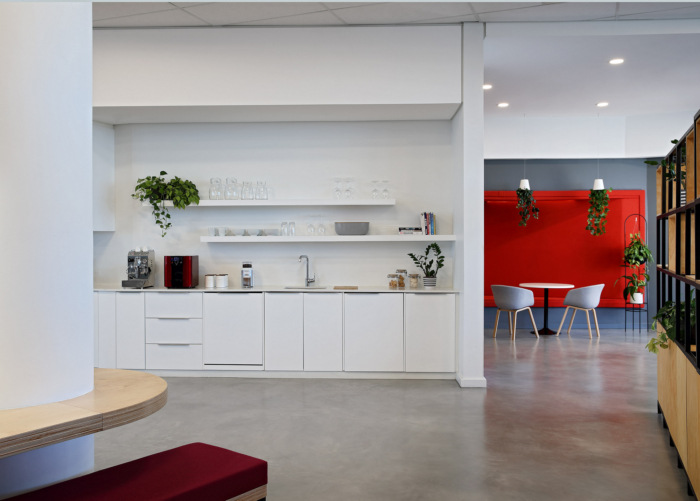 The designers took care to use of every bit of space, creating meeting areas from corners and straight walls, with the smart introduction of built-in bench seating wherever possible. As a result, staff are offered a multitude of break-away areas.