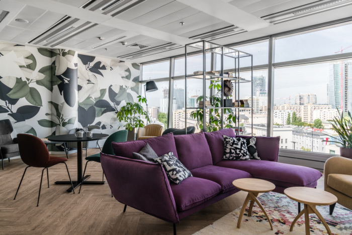 The Accor office, which is almost half the size of an orbital office, is dominated by co-working space. Orbis is a more traditional open space. Each of the spaces is equipped with high quality furniture, and through large windows you can admire a beautiful view of the panorama of Warsaw. This is an important aspect that builds the climate of the place.