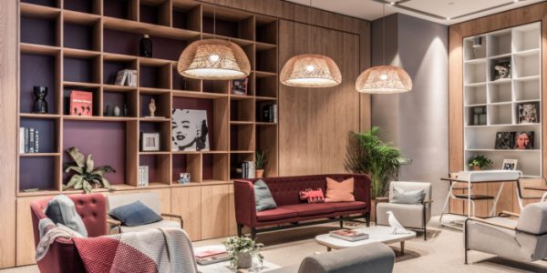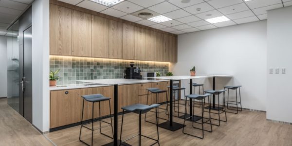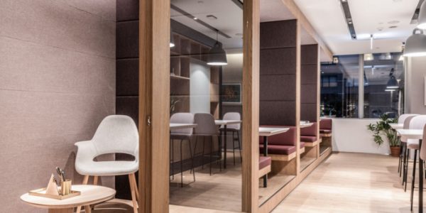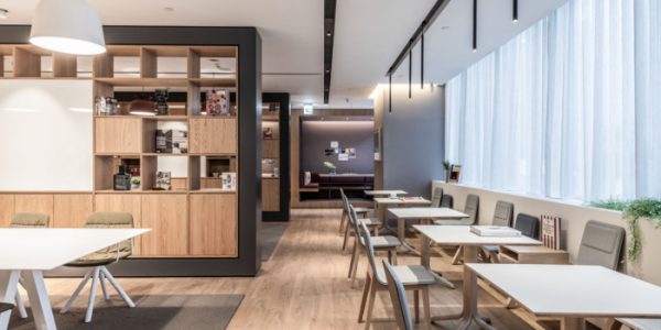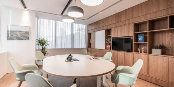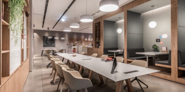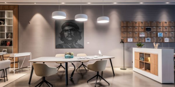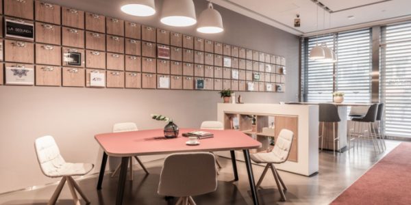 The goal is to create a home office but away from home. We curated minimalistic interiors with a warm color palette in mind and made wood, the “material that makes people happy”, a dominant material. As we wanted as many open plans as possible, spaces are divided by wooden bookcases from Alki. Which also serves as an ideal storage and display solution. Various sophisticated decoration, from paintings of iconic figures to plant pots, inhabit these bookcases to provide some healthy distractions.